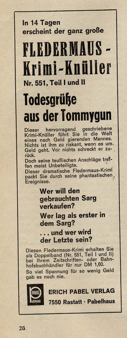 Fledermaus Pabel-Kriminal-Roman Preis: 80